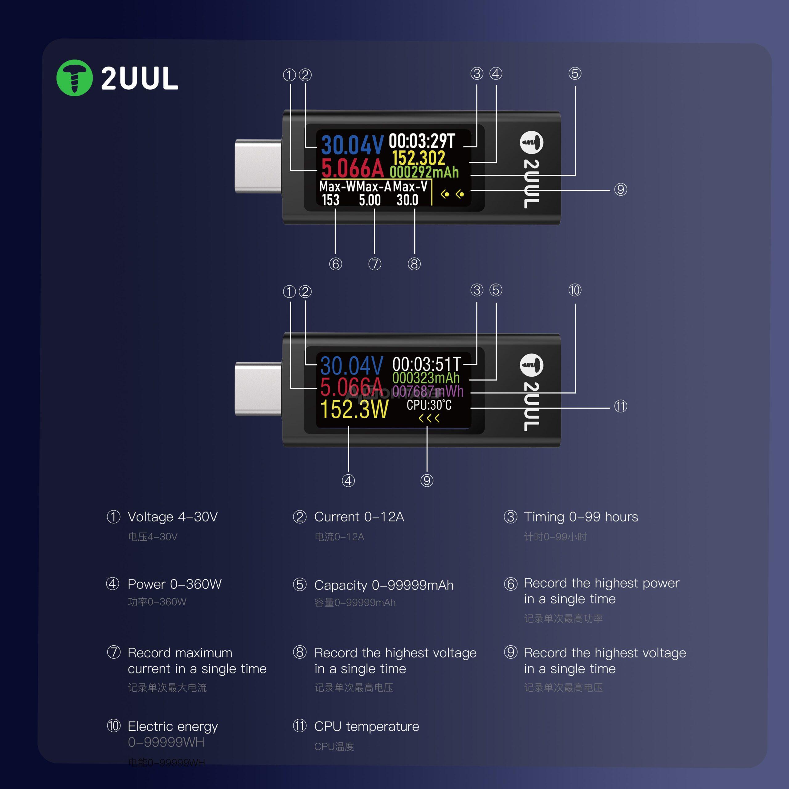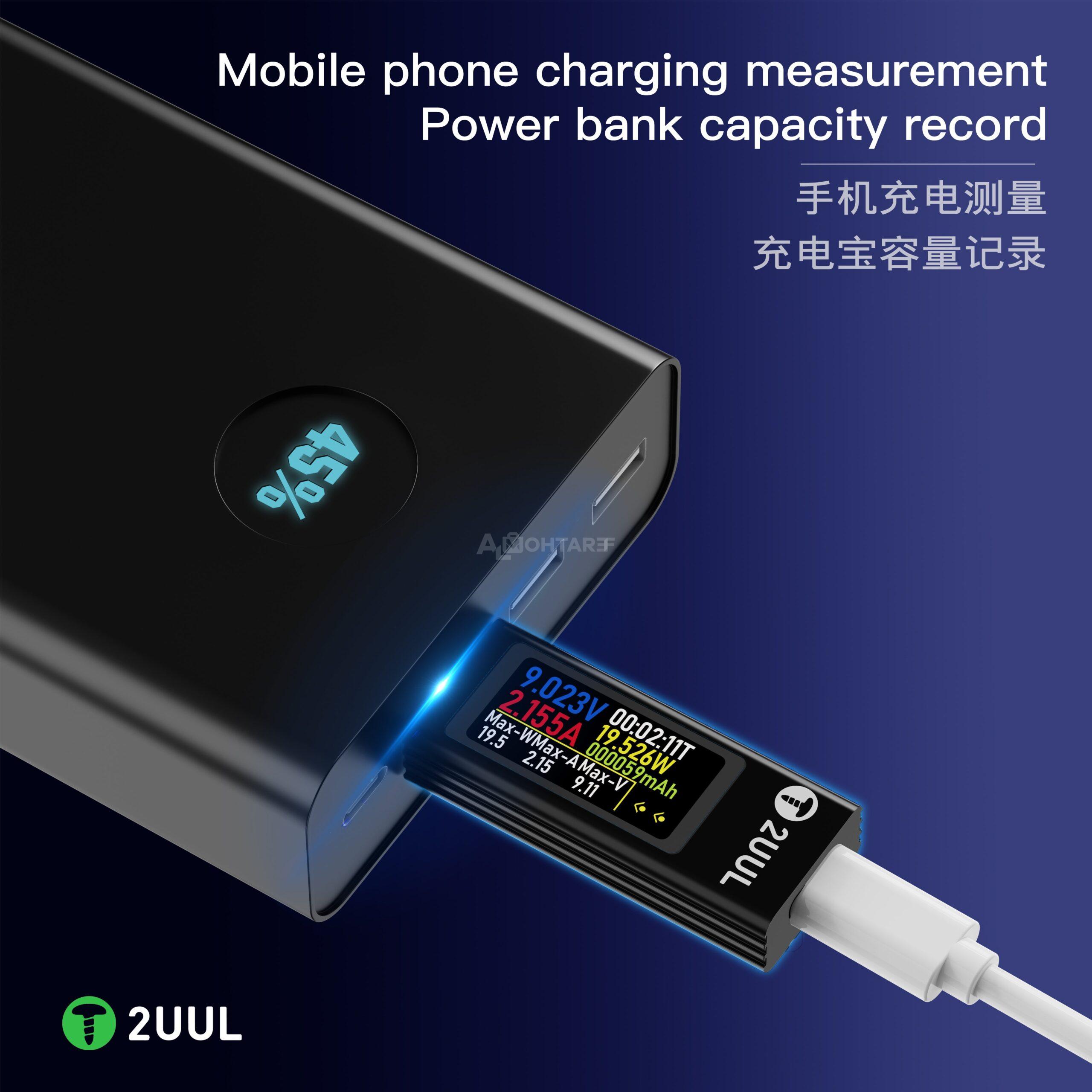 هذا الجهاز هو أداة فعالة لفحص مشاكل الشحن في الهواتف المحمولة. يقوم بقياس الجهد والتيار والطاقة مباشرة، مما يجعله أداة مفيدة لصيانة الهواتف.