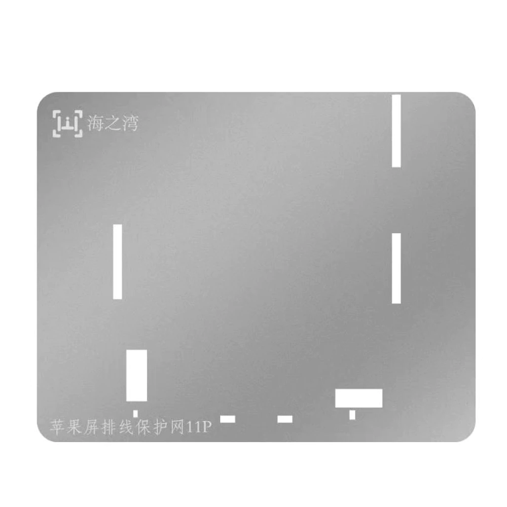 شبلونة آيسي شاشة لأجهزة iPhone 11 Pro تساعد فنيي الصيانة على إصلاح مشاكل الشاشة باستخدام قصدير سائل أو كرات القصدير. مصنوعة من ستانلس ستيل مقاوم للحرارة لتحقيق توزيع دقيق للقصدير.