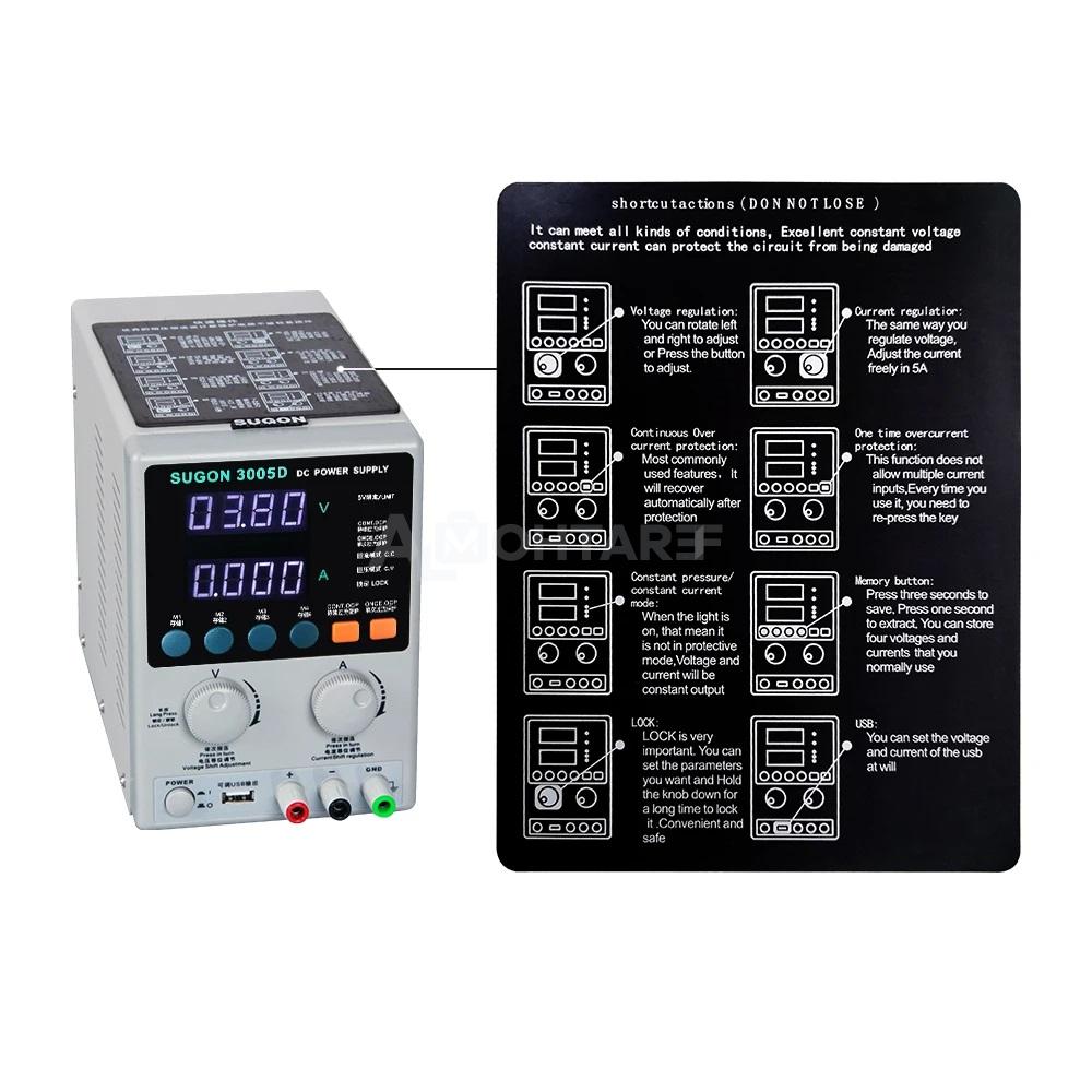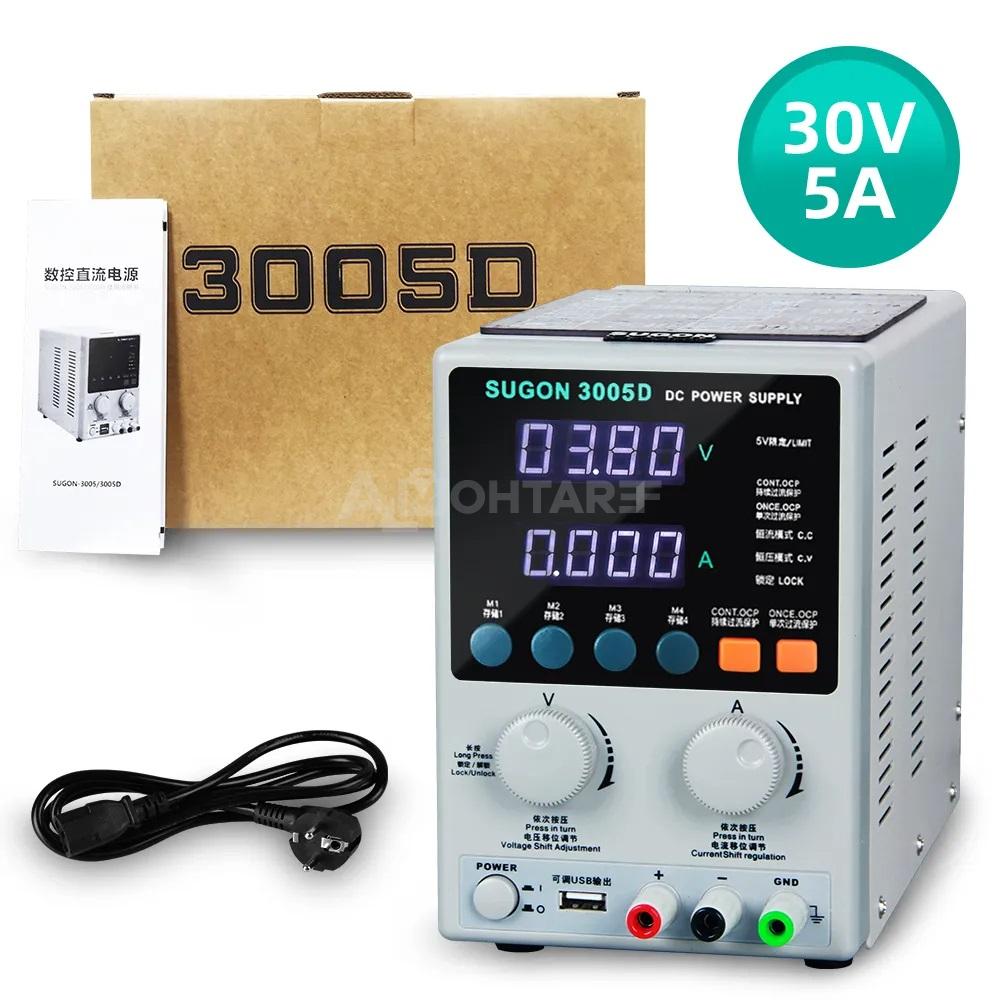 مزود طاقة متغير يوفر جهد يصل إلى 30 فولت وتيار 5 أمبير. مناسب لأعمال الصيانة والإصلاح.