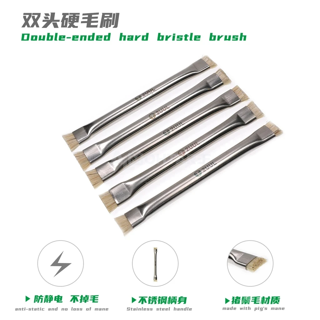 The 2UUL CL11 brush features dual heads: one pointed and the other flat. Made with stiff bristles that are anti-static, and includes a zinc-coated steel handle.