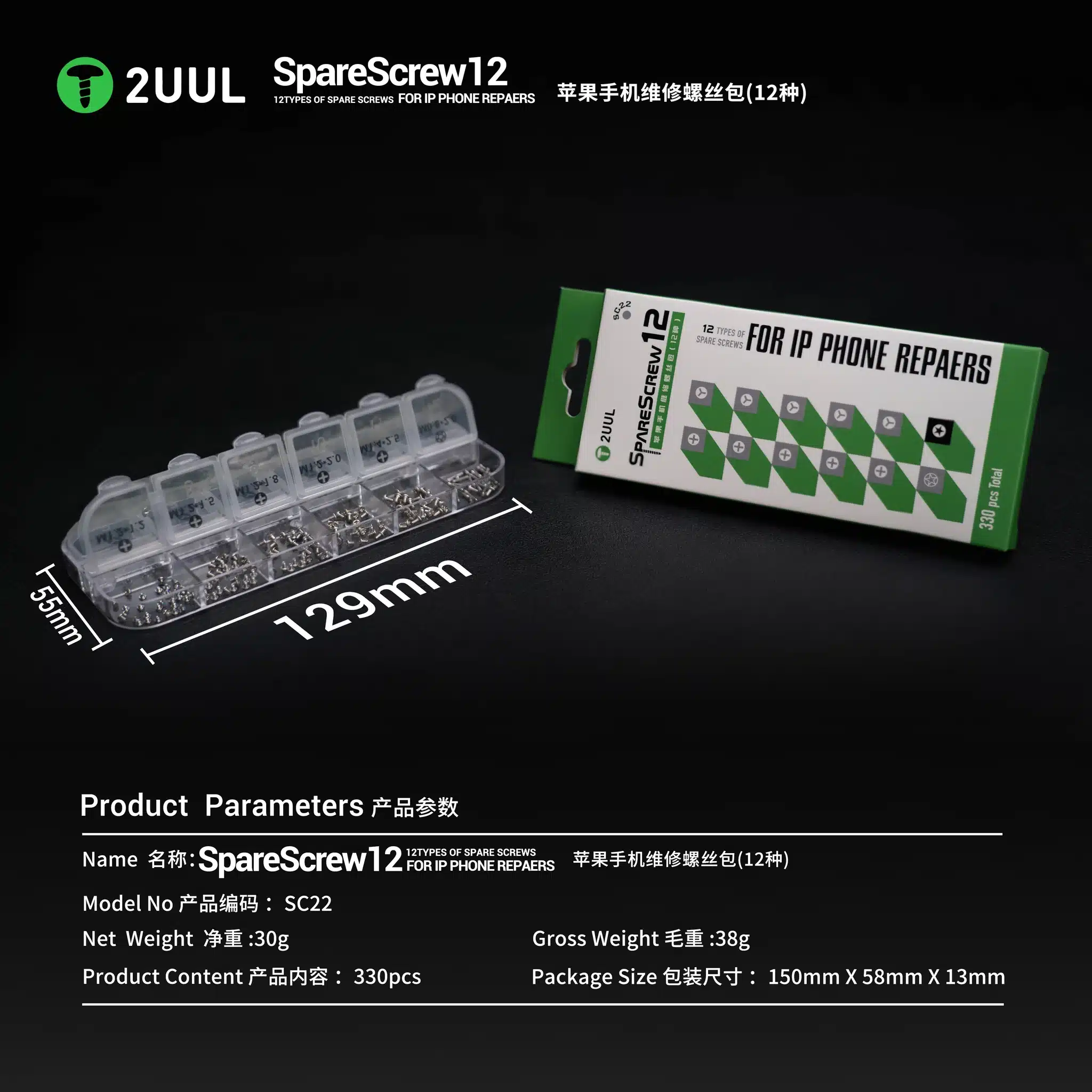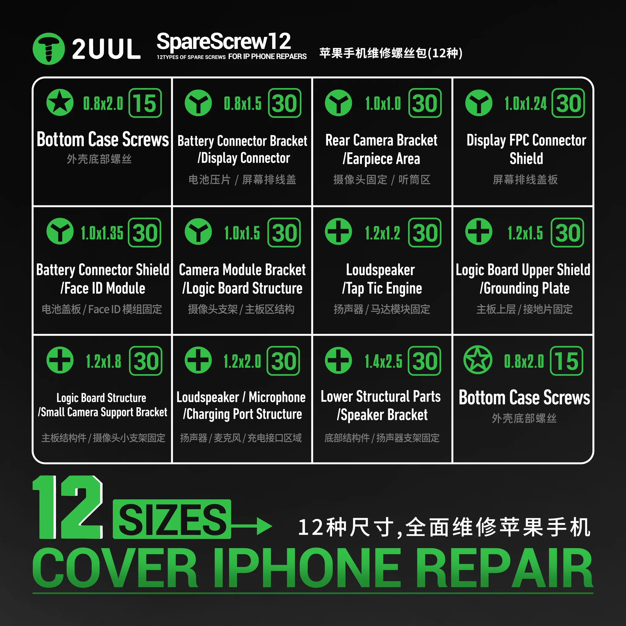 2UUL SC22 SpareScrew12 Screws for iPhone Repairs (330Pcs/Pack)