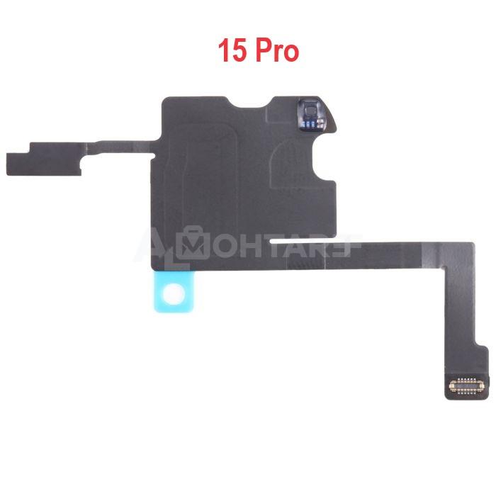 A flex cable designed to replace the iPhone 15 Pro proximity and ambient light sensor. It ensures precise connection with various components for smooth performance and efficient screen control during calls.