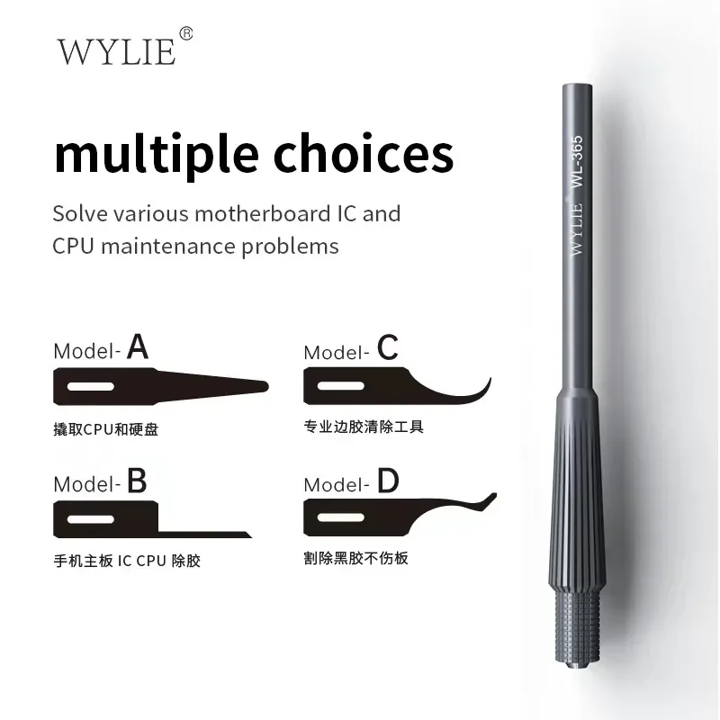 The WYLIE WL-365 set consists of 4 knives designed for maintenance technicians to remove glue from motherboards.