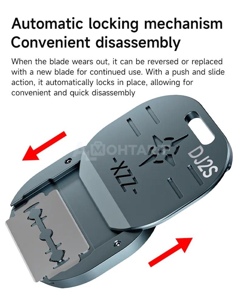 XZZ DJ2S is a professional fixture for mobile repair technicians, featuring dual-sided blades to facilitate the holding and lifting of sensitive covers like phone and tablet screens safely. Made from durable, heat-resistant materials, it allows precise opening of covers and sensitive components. Ideal for screen repairs, reducing the risk of scratches and breakage during disassembly.