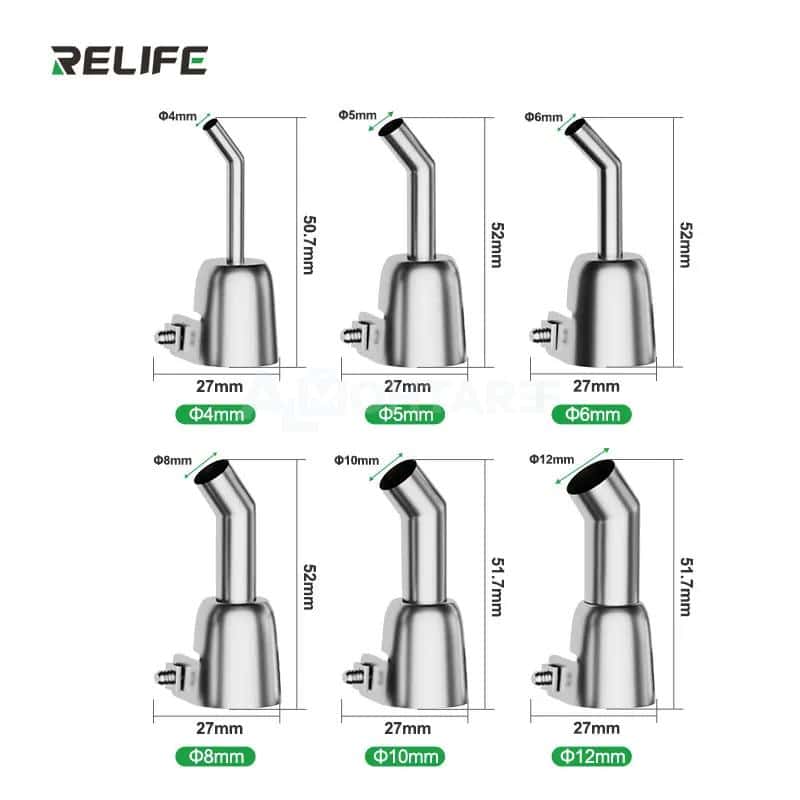 RELIFE 857 Series 45-Degree Bending Hot Air Nozzles (4/5/6/8/12mm)